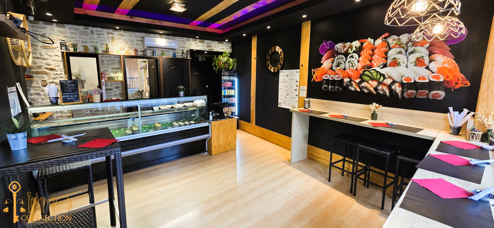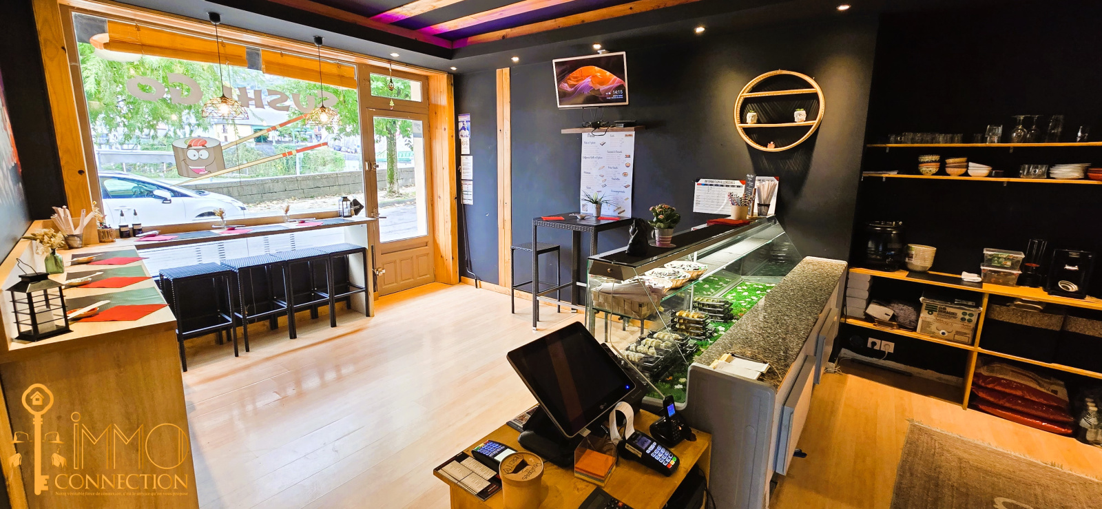 Le fond est composé de la manière suivante : Une entrée donnant sur l'open space, une cuisine équipée et un WC. Au rez-de-chaussée, vous trouverez une grande pièce qui vous servira comme salle de pause et un coin bureau. Une chambre froide et un vestiaire complètent l'ensemble. Vous aurez également la possibilité d'installer une petite terrasse devant la vitrine. Le chiffre d'affaires est en constante augmentation et les propriétaires actuels vous forment même pour devenir sushiman. C'est une opportunité à saisir !! Alors n'hésitez pas à contacter votre agence Immo Connection pour fixer une visite. Les honoraires sont à la charge du vendeur. Les informations sur les risques auxquels ce bien est exposé sont disponibles sur le site Géorisques : www.georisques.gouv.fr.